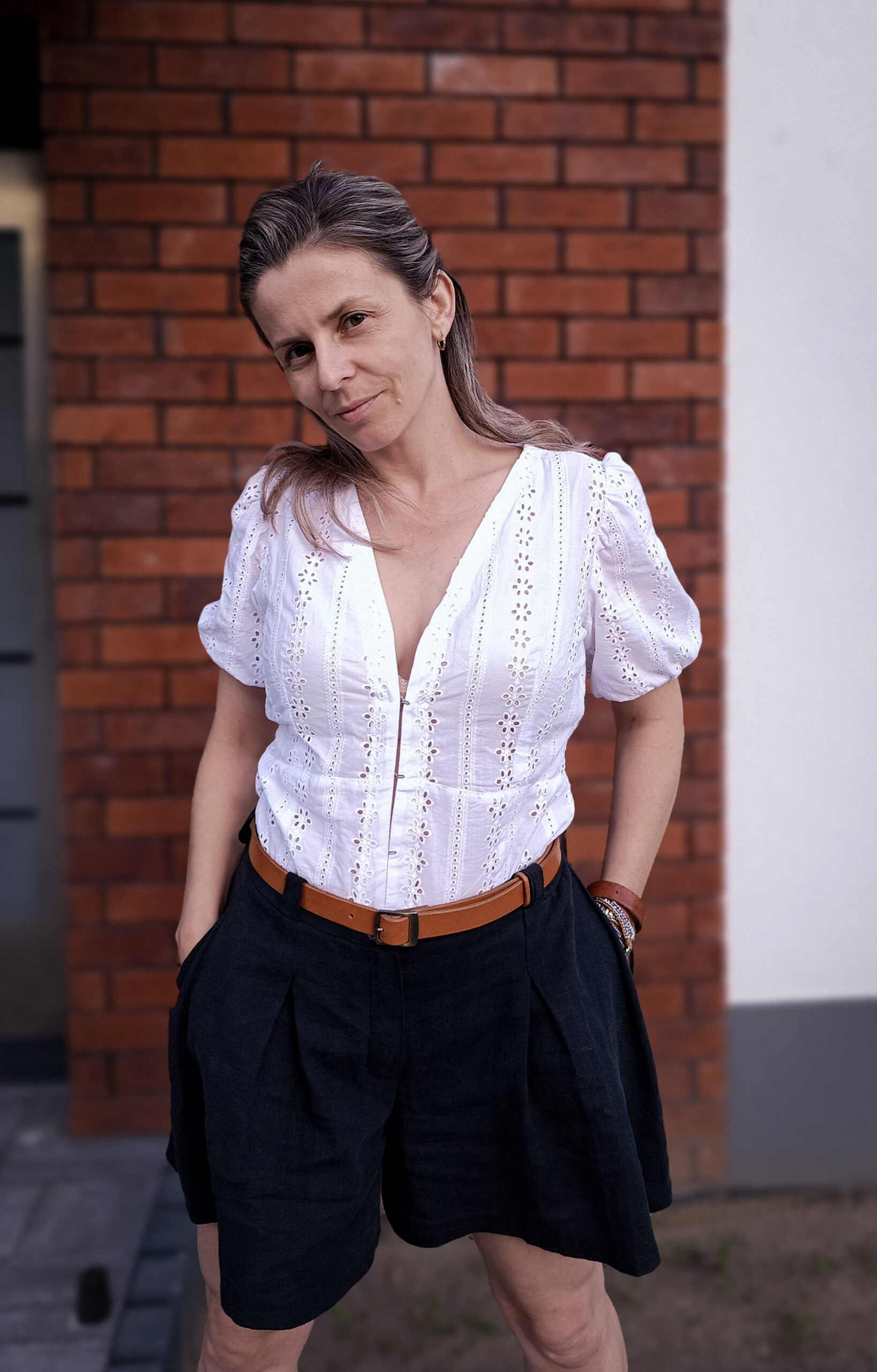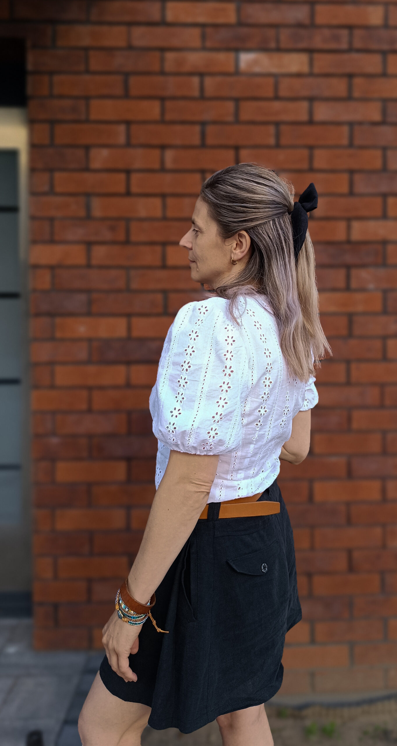 Modelka ma 158cm i prezentuje rozmiar 38 ( w biuscie 86/88cm, w talii 68/70cm)