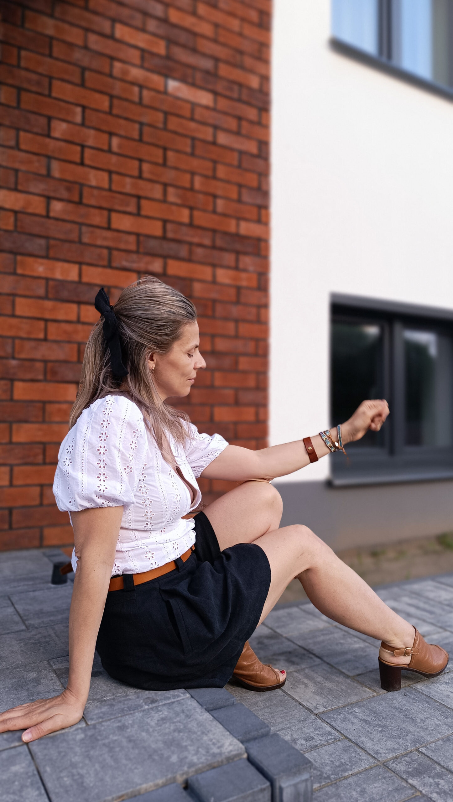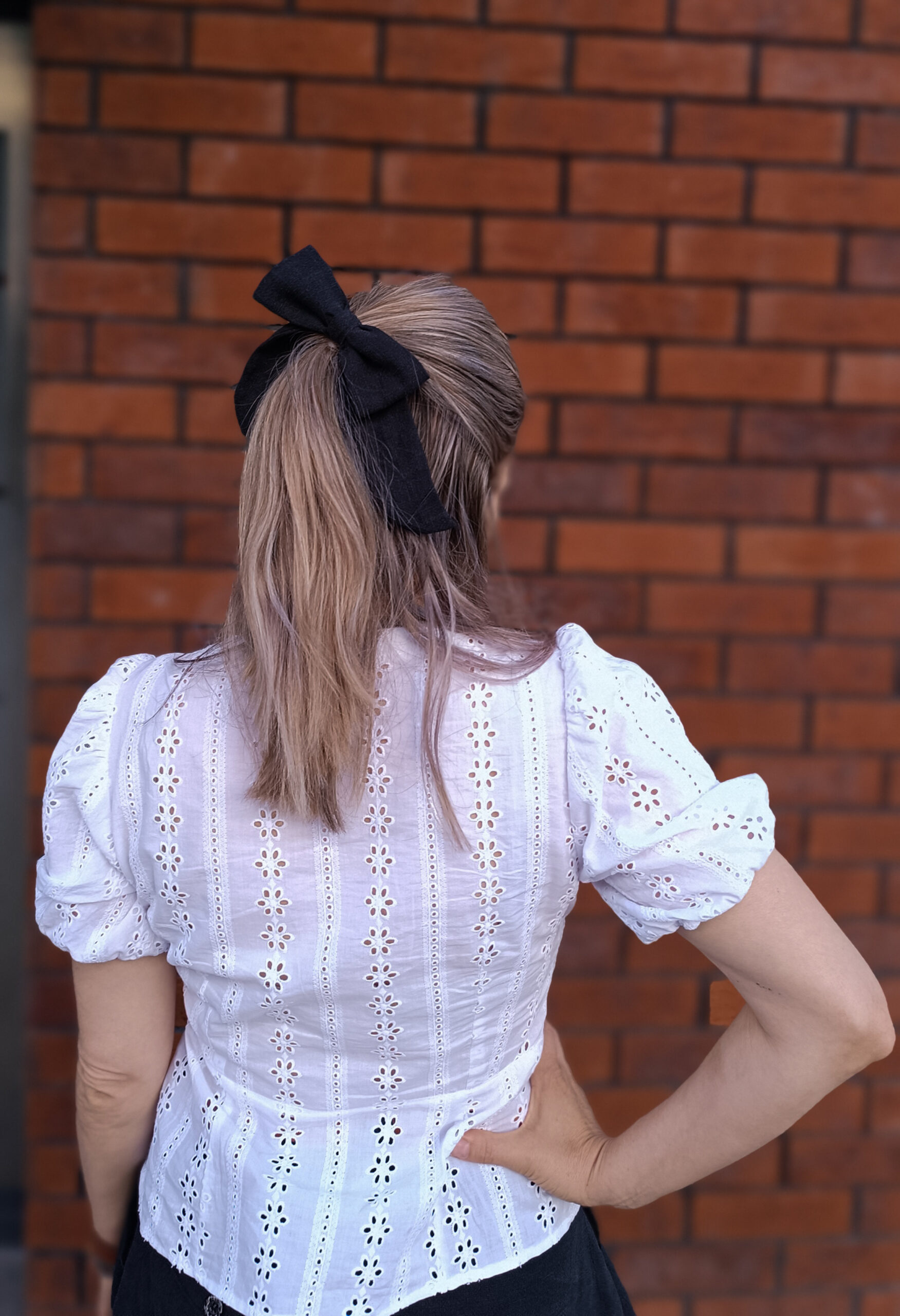 Haftowana bluzka dopasowana w biuście oraz talii.